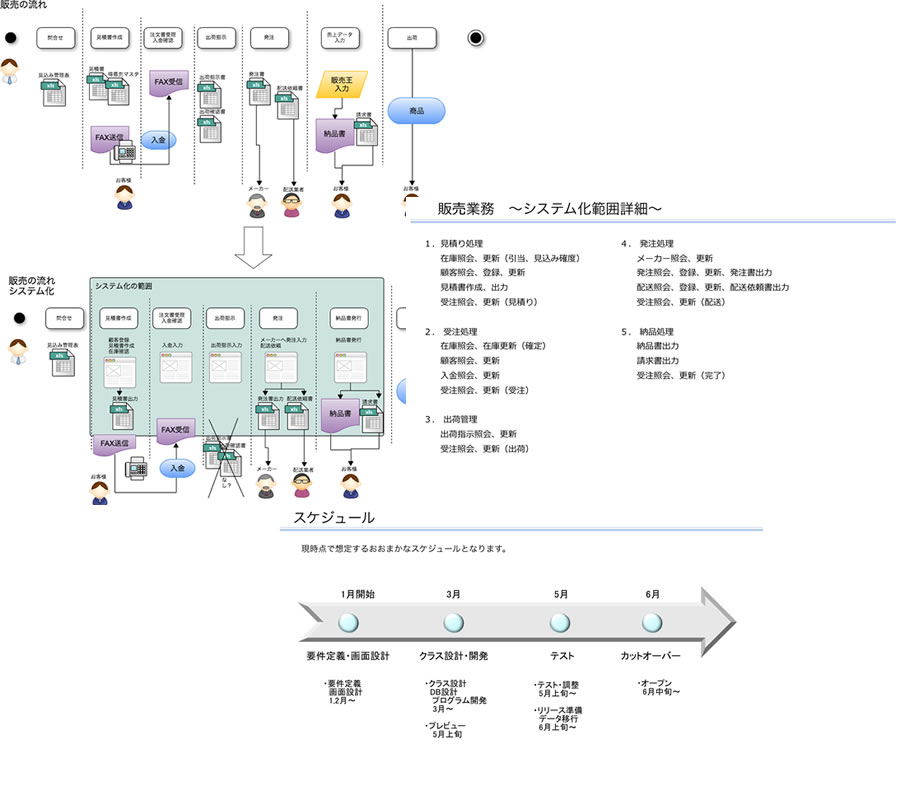ある程度、システムが出来てきた段階で、お客様に実際に操作していただき、フィードバック内容をシステムに反映させていきます。