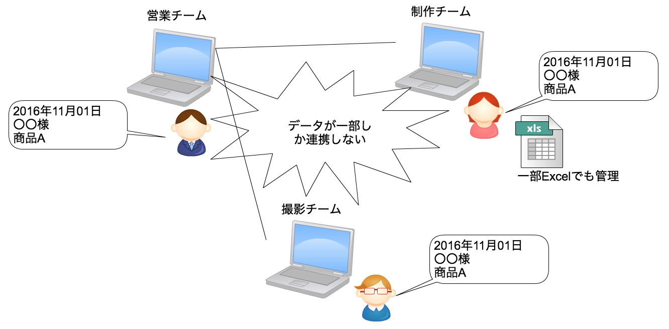 各部署間でデータ連携がスムーズ出来ていないところが最大の問題だった。